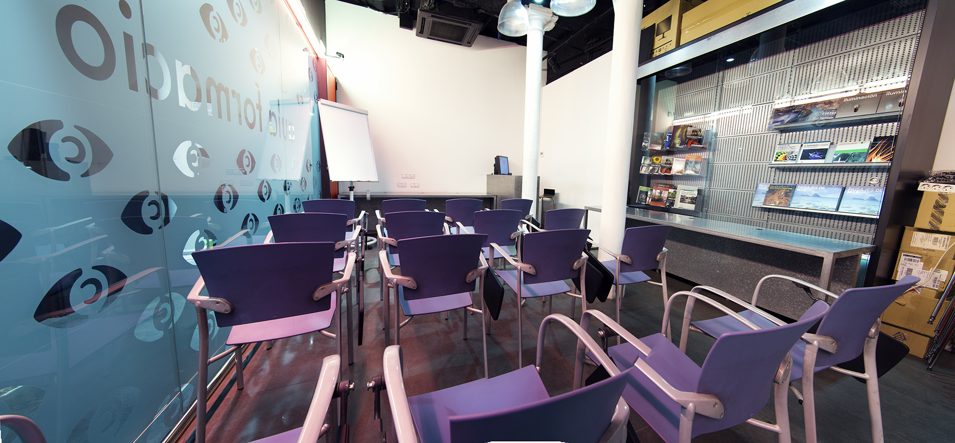 Los cursos son en Barcelona, la mayoría en el aula que tenemos en nuestra tienda, y algunos incluyen salidas y localizaciones exteriores.