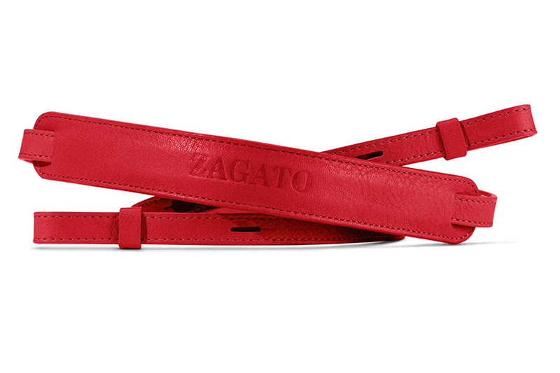 Además de la cámara y el objetivo, la exclusiva M10 Edition Zagato incluye una correa de cuero en color rojo con la inscripción del diseñador en relieve.