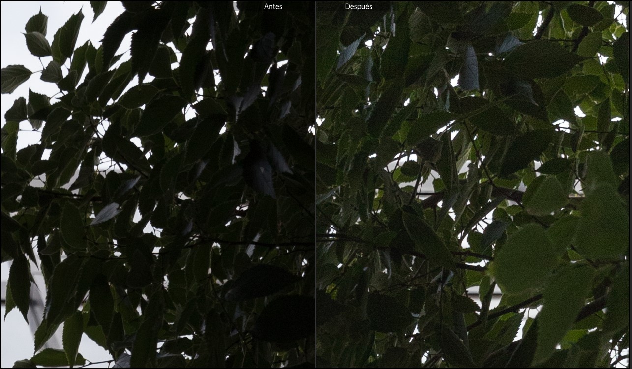 Como se puede apreciar, es posible recuperar gran parte de la información de color y detalle. Sin embargo, he de decir que es cierto que al recuperar sombras el ruido hace acto de presencia rápido, aunque no llega ser molesto dentro de unos valores aceptables.